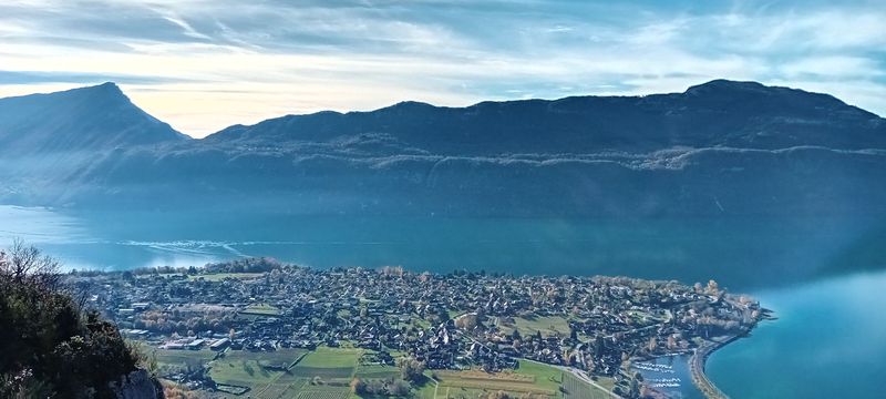Belle journée ensoleillée. Avons longé la rivière le Sierroz. Passage à la grotte aux fées à flanc de falaise avec une vue splendide sur le lac du Bourget , le Grand Colombier et la dent du Chat. Descente sur Brison Saint Innocent et retour au port. Merci Guy pour cette belle journée joyeuse.