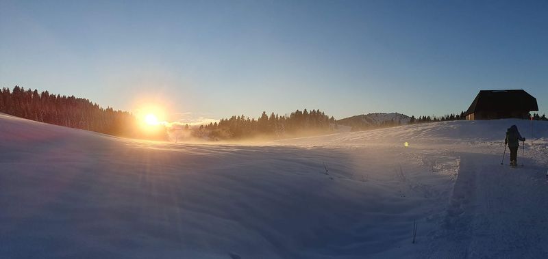Des conditions extraordinaires pour cette édition 2026 : super neige poudreuse tombée la veille, pas de nuages, superbe coucher de soleil, lune pas pleine mais lumineuse assurant une belle lumière et de belles ombres, pas froid, beaux panoramas, ambiance festive, accueil très sympa de Jean Marie au refuge de la Plate récemment rénové.