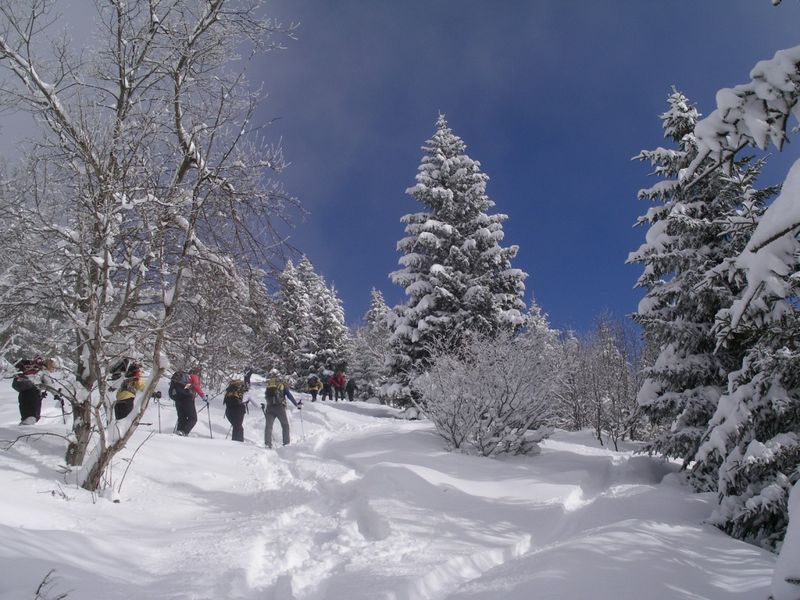 P du Chesnet. Brouillard au départ, mais nous restons optimistes : nous progressons vers le beau temps annoncé (la météo ne se trompe jamais !!!, c'est le temps qui refuse de se conformer aux prévisions) ; en effet, une ou deux apparitions de ciel bleu nous laissent l'espoir, mais nous revoilà plongés dans le brouillard (si bien que nous n'avons pas pu monter jusqu'au sommet de Sur Cou - prudence oblige) et celui-ci nous a accompagné jusqu'au retour aux voitures.