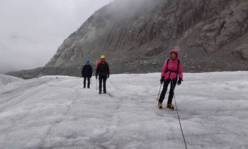 Une école de glace dans une ambiance hivernale. Descente interdite par les échelles à cause des chutes de pierres, brouillard et averses. Tout cela n'a pas empêché l'enthousiasme des participants.