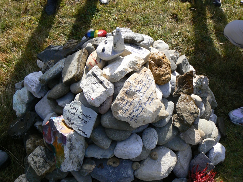 Une soixantaine de personnes s'est retrouvée à la Chapelle de la Duche le samedi 27 octobre 2007 pour un moment de recueillement en souvenir de notre ami Hervé, décédé en escalade le 17 juin dernier. Autour de la famille, étaient présents ses anciens collègues de travail, ses amis, des membres du CAF de Thônes, des adhérents et des initiateurs de la section montagne de Vitalmut Sports Loisirs. Après des témoignages et un cérémonie religieuse, les participants ont édifié un cairn avec les pierres qu'ils avaient personnalisées.