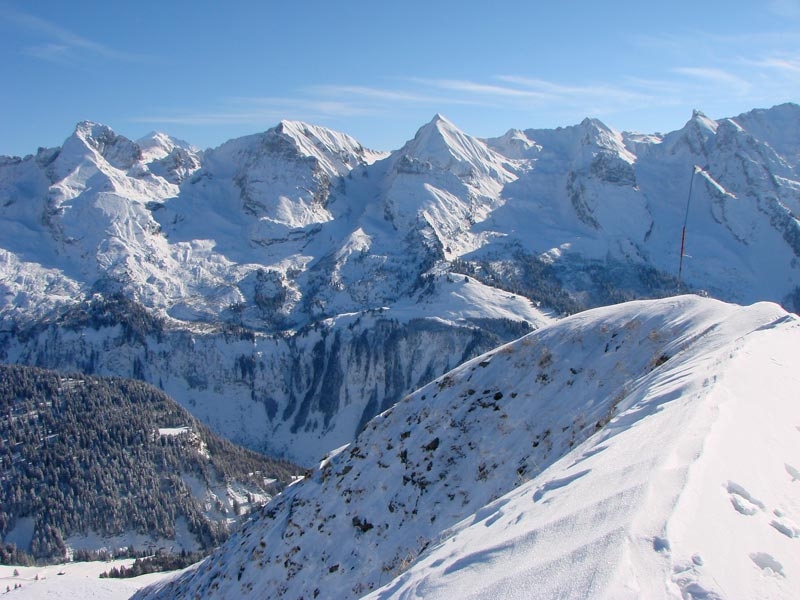 On est monté côté télésiège du Lachat et redescendu par le sommet de la "Floria" puis par les "Outalays. En haut, la neige a été soufflée, il restait qqs plaques de neige compactée entre les cailloux très agressifs pour les semelles fraîchement réparées.