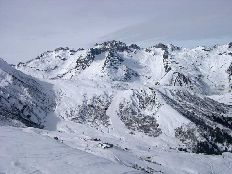 Plus haut, on trouve une alternance de neige en gobelets et de croûte. Depuis le Col du Gollet, on a une vue magnifique sur le massif de la Lauzière et la station de Val Morel.