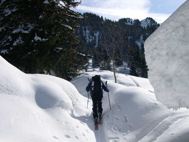 Concours de traces dans la peuufff qui recouvre une croûte solide, on se régale, c'est toujours trop court dans ces moments-là. Quelques passages où il faut remonter, c'est dûr quand on a les skis dans le sens de la descente.