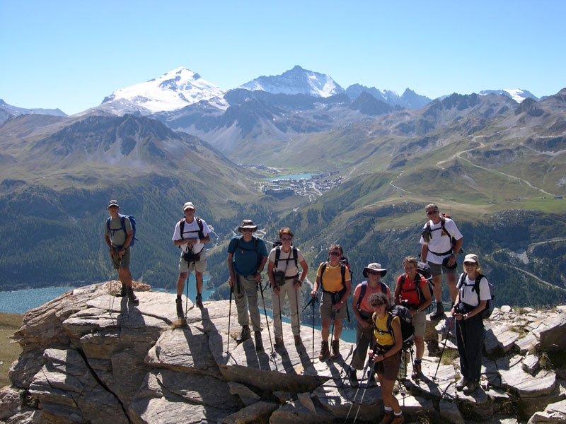 Le retour par le sentier nous permet de contempler le massif du Mont Pourri, la Grande Casse, La Grande Motte, la station de Tignes, son lac et le barrage.