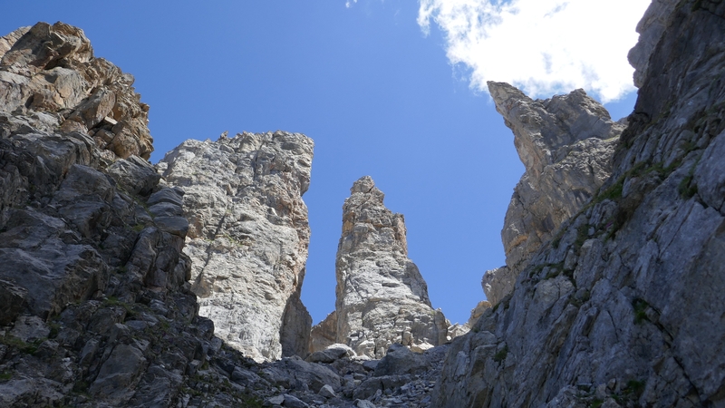 Départ dans une certaine fraîcheur pour ne pas dire une fraîcheur certaine (8-9°) le long du torrent de la Rosière dans la vallée des Avals. Belle montée soutenue dans la caillasse pour atteindre la brèche de la Portetta dans un décor rappelant les Dolomites.