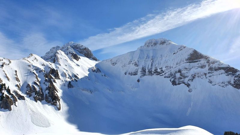 Une belle journée digne du printemps avec de la neige de printemps (gelée le matin, bien transformée l'après-midi) et des températures douces de printemps.