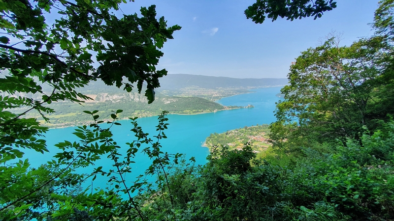 Magnifiques panoramas notamment sur le lac, les Bauges et la Tournette. Heureusement que le parcours s'est déroulé en grande partie en forêt nous apportant une certaine "fraicheur" pour compenser la chaleur lourde et moite. l'orage était annoncé pour le début d'après-midi mais nous épargnera finalement (quelques gouttes seulement juste après le pique nique).