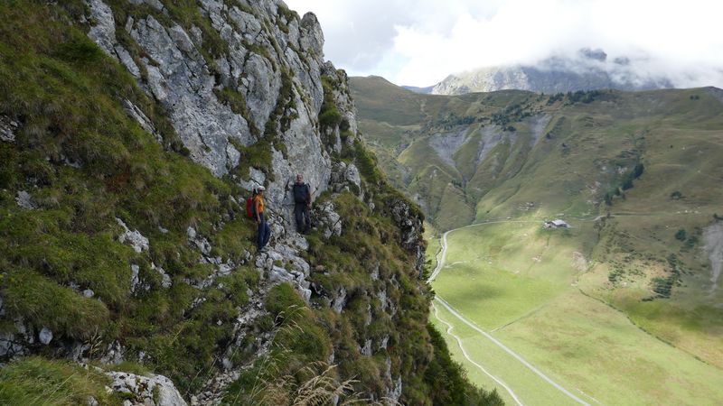 Le ciel du matin pouvait nous faire douter d’une belle journée ! Nous étions 4 à croire au soleil : Daniel qui nous emmenait, Nicole, Agnès et moi. Une belle découverte que ces 2 itinéraires pour faire une boucle à la tête de Bostan. Le 1er passage : le pas de la Latte nous emmène presque au sommet. Le 2 eme en Suisse : le pas de la Bide nous permet de descendre entre les barres rocheuses pour retrouver les alpages, puis le col de Coux. Itinéraire très ludique, même s’il faut rester concentré.