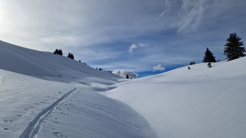 Après un plateau Savoyard au sommet, descente par les pistes. Aucun problème de neige.