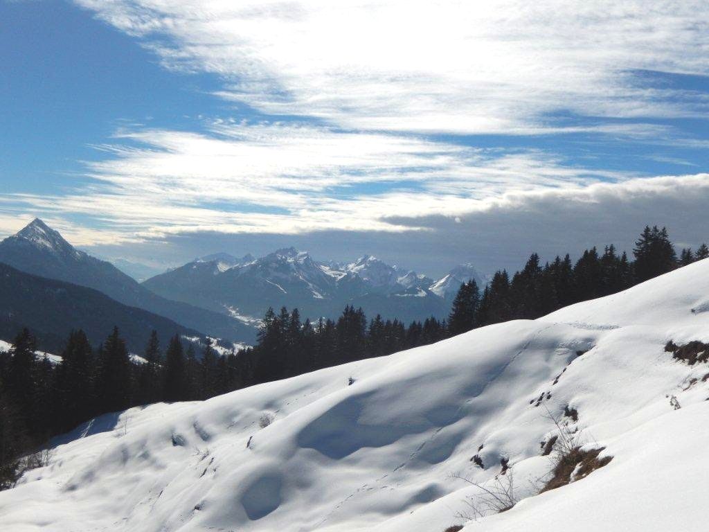 Après avoir reporté la sortie du Pinet mercredi 25 au jeudi 26 février pour cause de mauvais temps sur la Chartreuse et qui s'est bien amélioré dans la nuit , avec du grand beau annoncé le jeudi nous nous retrouvons à 5 personnes et moi même sur 20 pers et nous décidons de faire le tour de Bois Noir et la Pointe de Bois Noir. Nous partons du Torchon avec un soleil d'enfer et une neige de qualité car ce n'est pas le cas sur le versant de Manigod où il n'y a absolument plus rien et aussi dans les combes face Est du Sulens ou un groupe à skis a enchaîné les couloirs qui étaient encore chargés en neige car la plupart étaient purgés, début d'après midi se couvrant en haute altitude et se gâtant en fin de journée. Une journée magnifique dans un endroit pas loin d'Annecy.