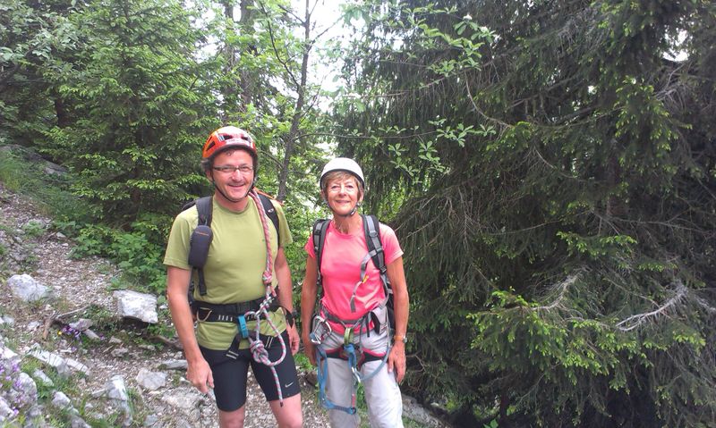 Initiation à la Via Ferrata pour Danièle. Première réussie dans de bonnes conditions: météo excellente, pas trop de monde. A refaire…