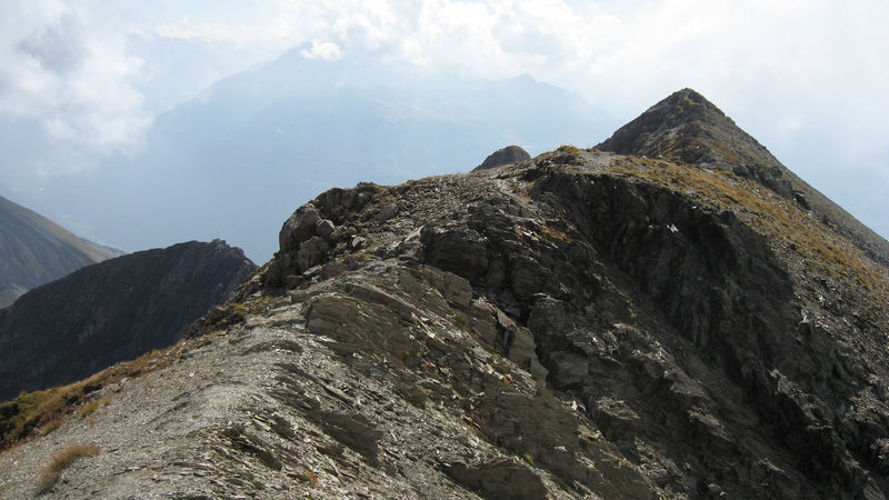 Itinéraire / Conditions : Départ du Cormet de Roselend, remontée la Combe de la Nova jusqu'au captage d'eau (cote 1999m), montée SE vers le Passeur de Pralognan, traverser sous la Pte de Pralognan, suivre le sentier dans les éboulis jusqu'à un col (cote 2844), contourner par le Nord ou monter par l'arête en rocher. Retour par le même itinéraire