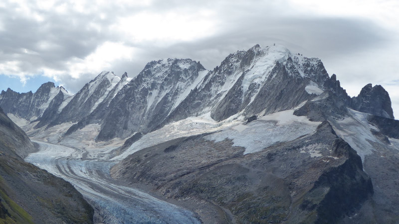 Montée de plus en plus raide dans les rochers pour rejoindre le Bec de Lachat et dominer le Glacier d’Argentière dans toute sa splendeur.