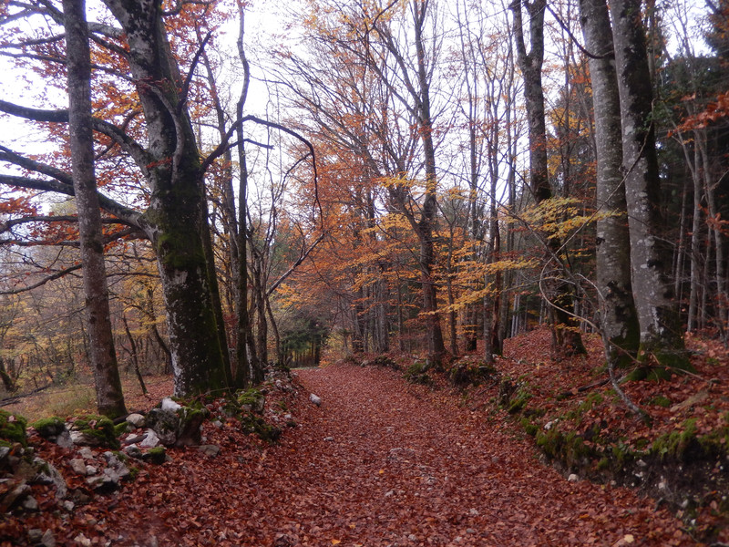 Montée pentue dans la forêt avec neige vers 1300 m puis passage à la grotte des fours, petit passage câblé puis arrivée sur le plateau avec une visibilité quasiment nulle, casse croûte au chalet de Leschaux, traversée avec une bonne visibilité jusqu'au chalet de Gruffy et de nouveau brume à couper au couteau pour descendre sur Gruffy.