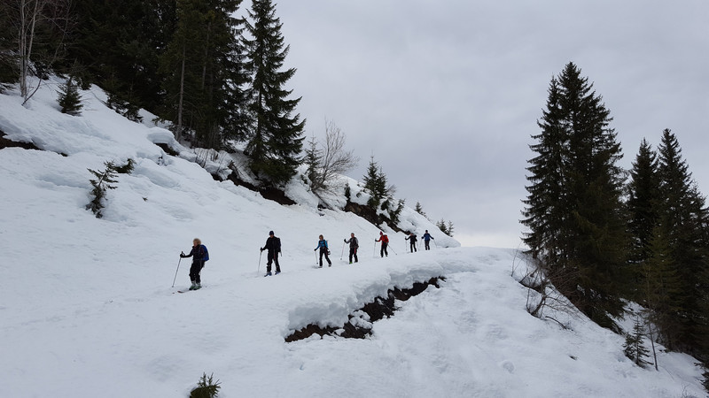 Bon, la veille il faisait beau mais notre but ce jour-là était de prendre l'air et nous y avons pleinement reussit. La neige était là et tout à fait skiable même bonne par endroit. Un vent au sommet à mettre les peaux à l'horizontal et les gants au large.