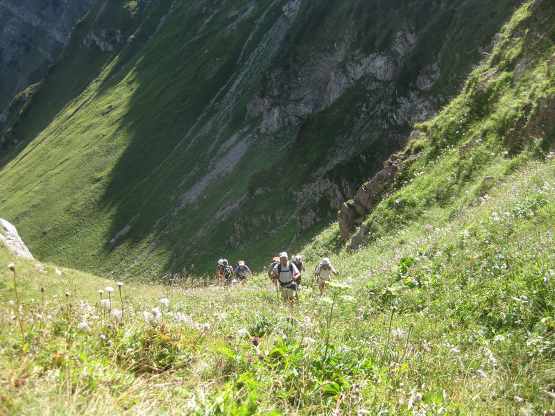 Chaleur torride, bon groupe de marcheurs tout-terrain. Jolie traversée et lac bien apprécié.