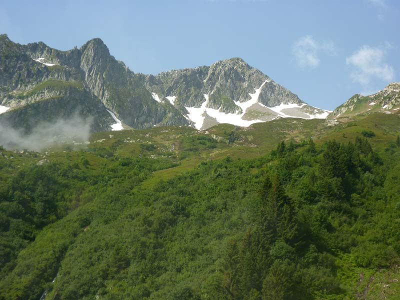 Départ de la voiture avec quelques gouttes, mais au fur à mesure le soleil arrive à percer. Ascension magnifique dans les bois et ensuite dans les champs suivi d'un bel accueil par les Tarrines qui étaient plutôt surprises de nous voir. Du chalet communal du Col de l'Arc nous profitons d'une vue sublime sur le Mont Bellacha, le col de Basmont et la chaîne du Grand Arc.