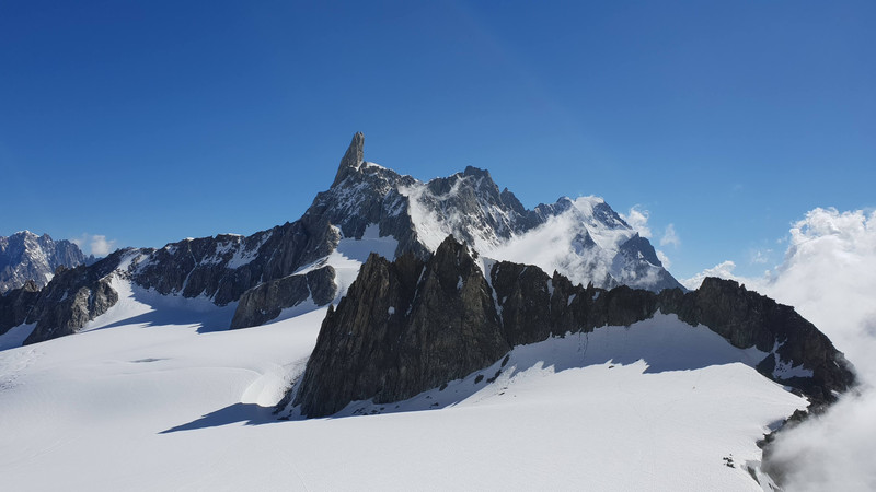 Excellentes conditions pour une initiation au glacier. Petite balade derrières les Aiguilles Marbrées puis retour direction les Flambeaux et enfin visite de l'ensemble du téléphérique qui vaut véritablement le détour.