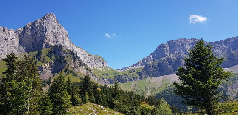 Après une longue ascension dans la forêt, le sentier débouche dans le délicieux alpage de Véran au pied de l'Aiguille d'Aujon et de la Tête du Colonney avant d'atteindre le merveilleux belvédère de la Tête de Lassy