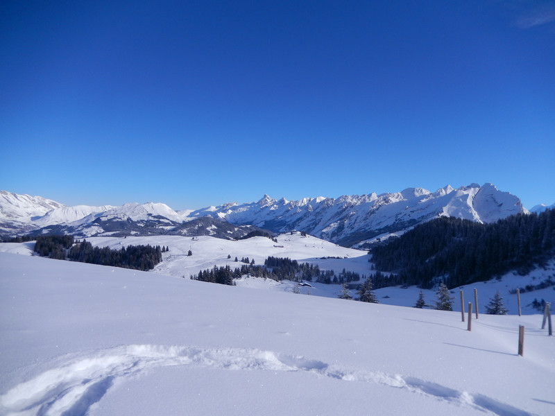 Arrivée au col de la Croix fry avec un -9° au compteur et 20/25 cm de neige au départ et beaucoup plus au sommet.