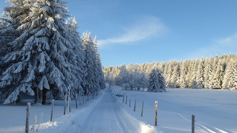 Départ du Col de Cuvery avec -8° sans vent et un soleil qui a du mal à traverser les hauts nuages d'altitude.