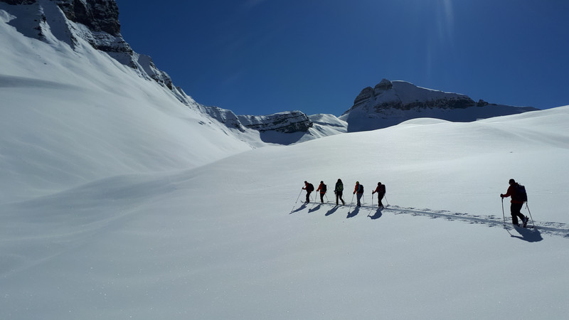 Grand beau temps avec 30cm de poudreuse non tracée. Merci à Robert qui nous a fait une belle trace.
