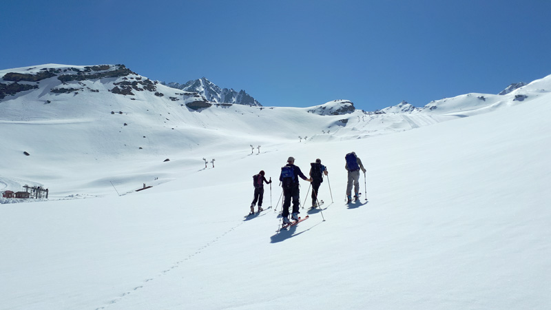 Itinéraire / Conditions : Départ du parking du vallon de Caron; monter dans le vallon jusqu'à l'intermédiaire; prendre à gauche dans une pente raide jusqu'au départ du funitel de grand fond, monter en restant à gauche de cette remontée jusqu'au col d'Orelle sur des pentes moyennes.