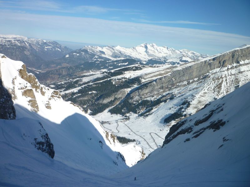 Combe à Marion en excellente condition. On monte au sommet sans déchausser puis on passe de l'autre côté pour atteindre une des pointes de la Blonnière où on casse la croùte. Retour en haut de la combe à Marion pour attaquer la descente jusqu'au col des Aravis : un régal !
