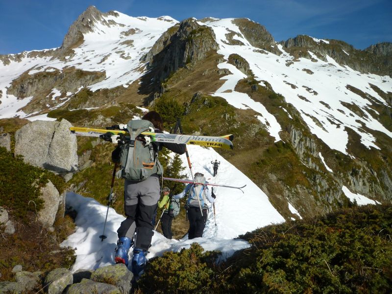 Départ de La Pautaz, passage par le col du Loup, sommet à 11h45. Après s'être imprégné du paysage on attaque la descente dans une neige excellente jusqu'au chalet de Lachat où nous nous restaurons. Arrivée aux voitures skis aux pieds. Temps estival. Encore une belle journée !
