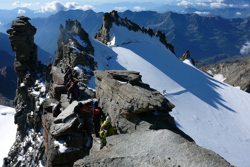 2eme jour : sommet, retour au refuge Victor Emmanuel ( le glacier vers le refuge de Chabaud était trop crevassé ), traversée par le sentier "balcon" vers le refuge Chabaud.