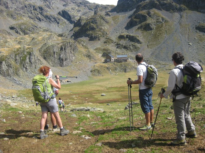 Départ des 4 chemins au-dessus de Freydière, montée au Grand Colon par le chalet du Colon sous un vent tempétueux, descente et casse-croûte vers le lac Merlat, petit café au refuge de La Pra, montée au col du même nom, descente par le lac Crozet.