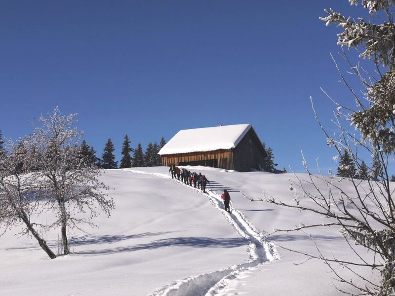 Brouillard dans la vallée, beau temps sur le plateau, froid sec - 5° dénivelée 420m-11km 200- 6 h 24 en tout