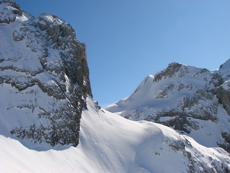 -15° au départ des Troncs, on n'a pas eu le temps d'avoir froid en montant dans la partie raide du départ. L'équipe du jour a placé 3 randonneurs au sommet : Amélie, Jean-Claude et Sylvain tandis les autres rejoignaient le camp d'altitude à 2200m pour un bon casse-croûte au soleil. Bonne descente en contournant les barres rocheuses.